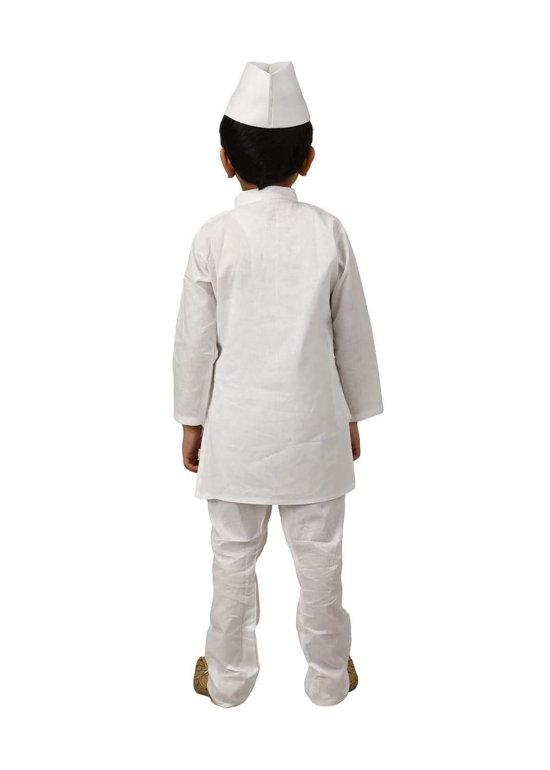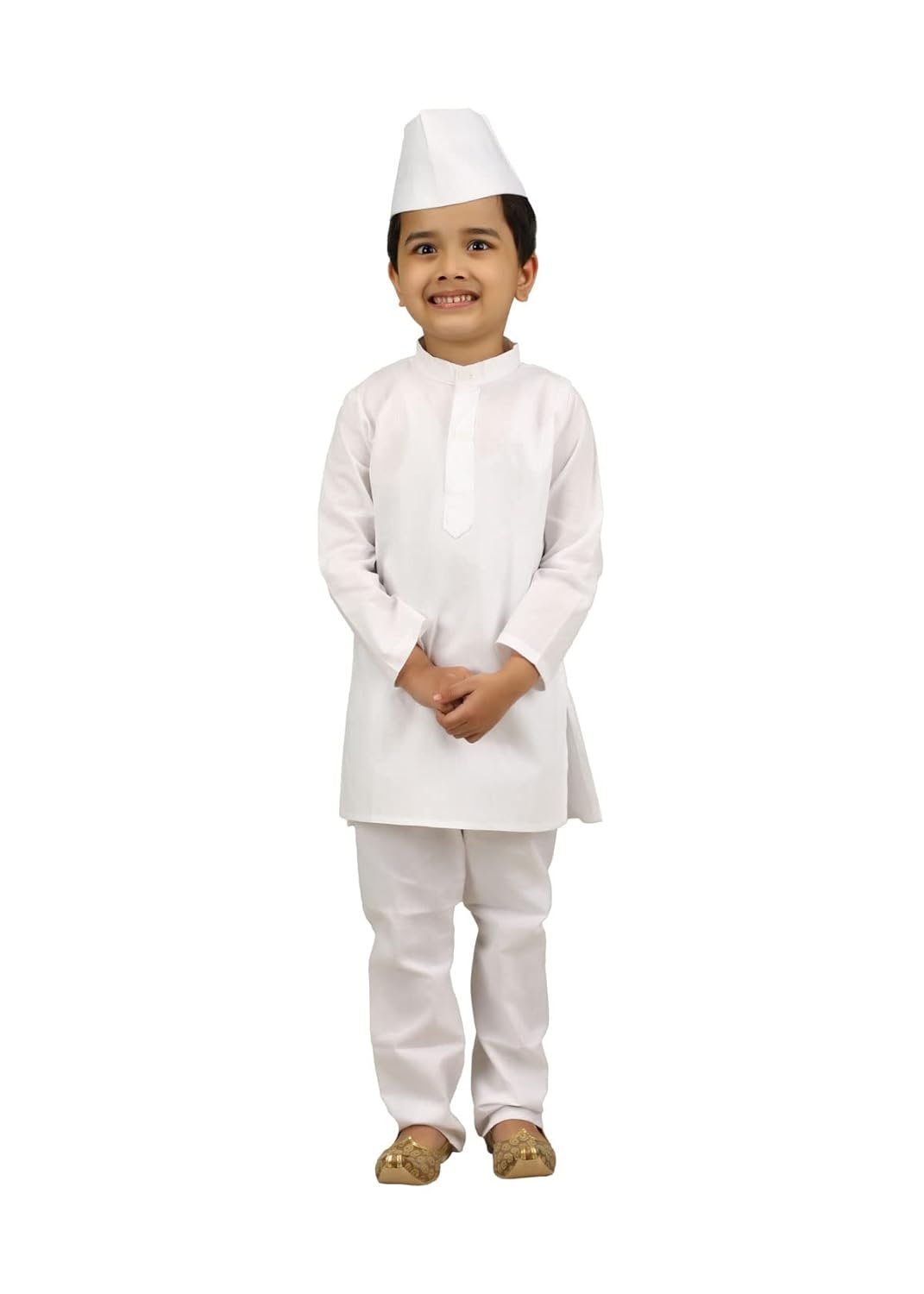 BookMyCostume Aam Aadmi Dabbawala Kids Fancy Dress Costume | Indian Politician Neta Ji Costume | Cotton | White | Maharashtra White Kurta Pyjama Dress for Boys & Girls