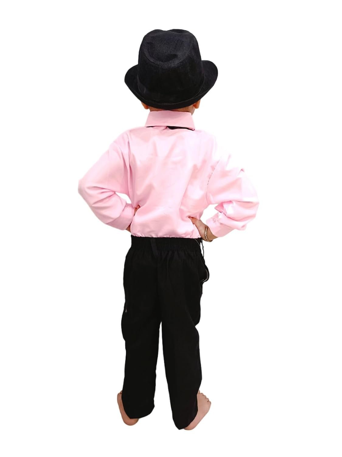 BookMyCostume Ballroom Western Dance Pink Frill Shirt Black Pant Hat & Bow Set Kids Fancy Dress Costume