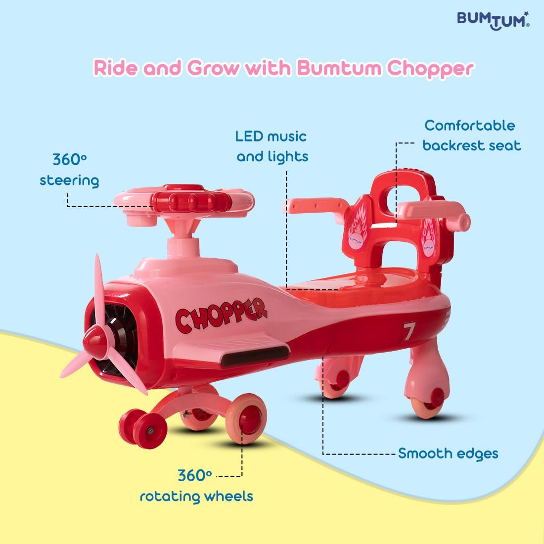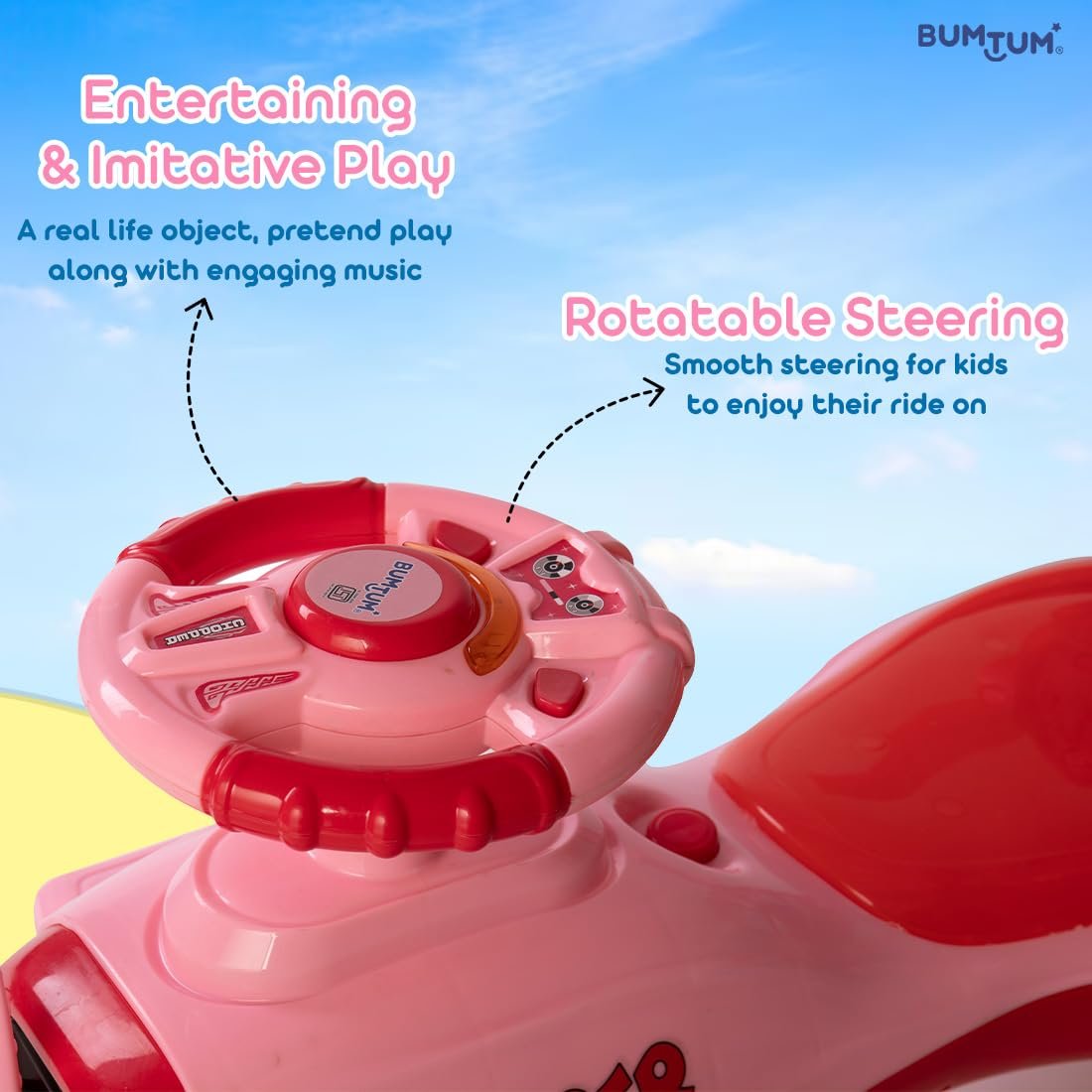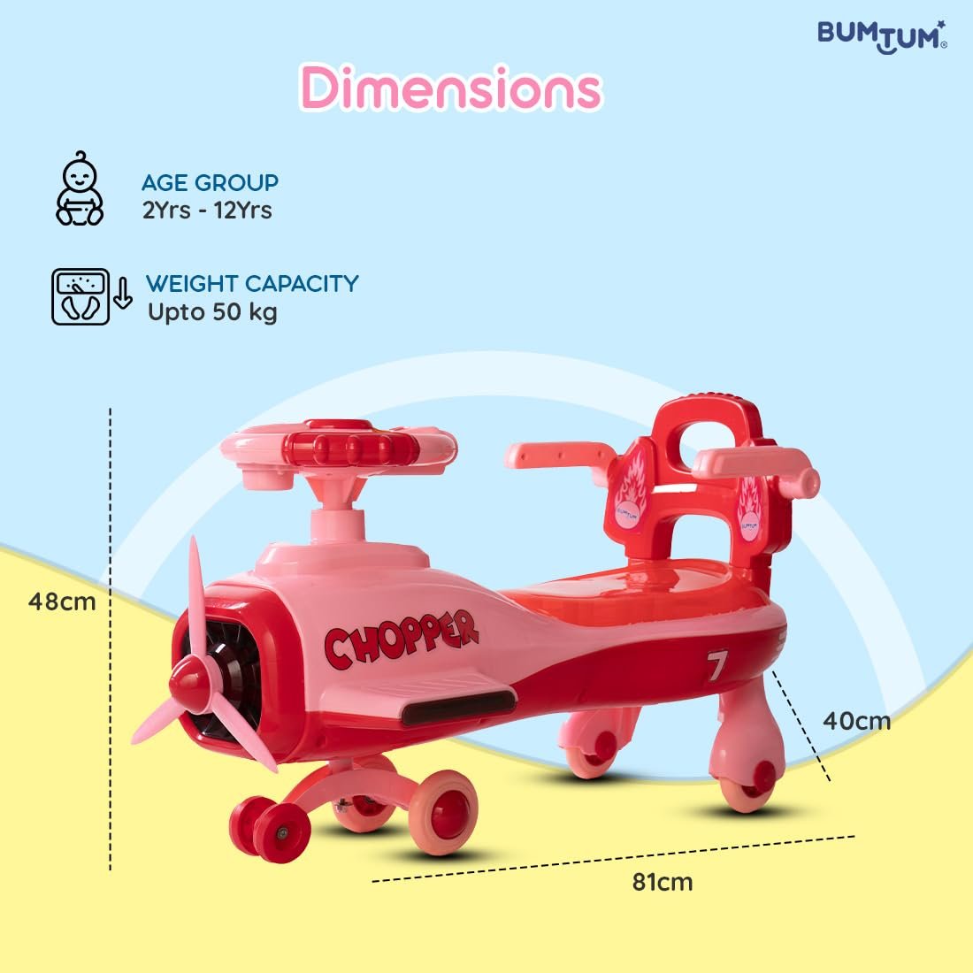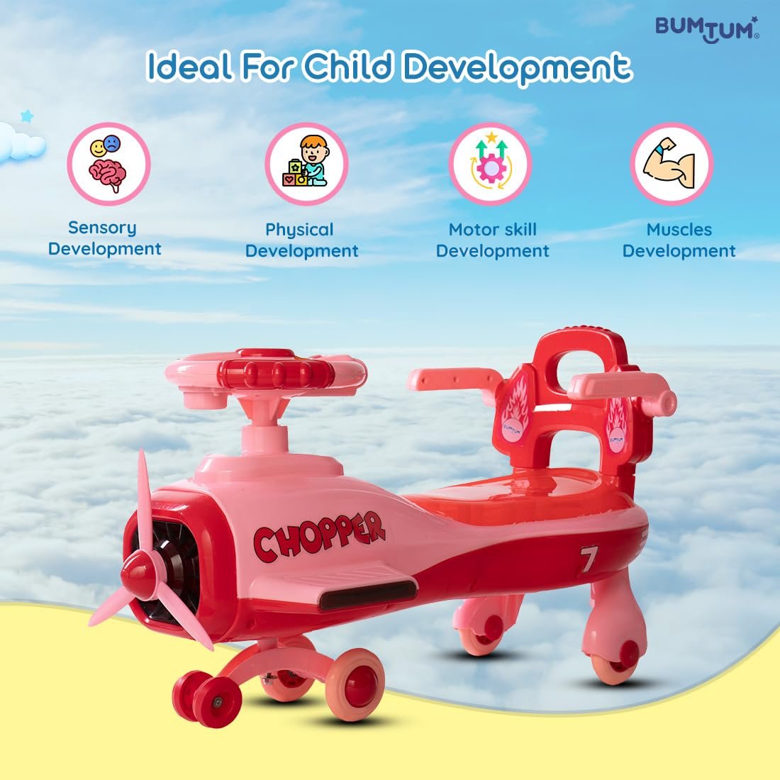 BUMTUM Lighting Effect Chopper Swing Car Toy Ride On Cars for Kids 1 to 5 Years | Push Rider | Comfortable Seat with Back Rest (Red)