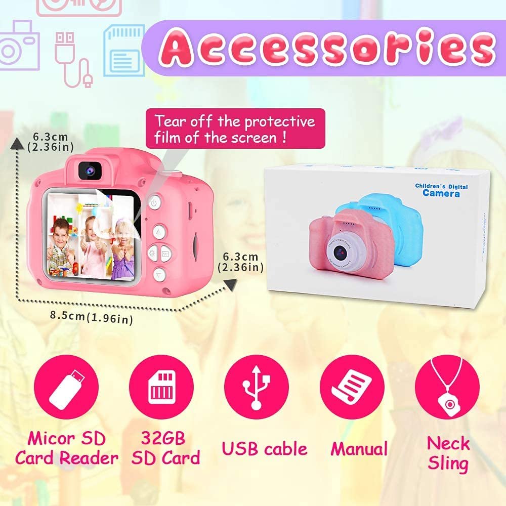 💙Clearer Moment Recorded & Multi-scene Selections- Equipped with auto Focus, 8.0 Mega pixels and 1080P Video. Greatly improved the definition of photos . Catch the wonderful joy moment for boys or girls. With Big head sticker shooting, children can take photos with frames, leave some hilarious photos with family or friends