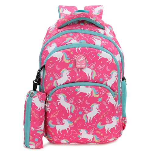 Chris and Kate Unicorn Printed Fashionable School Bag for Boys, Girls Childern Unisex Kids, Suitable for Tuition, Picnics and Casual Outings with a Free Stationery Pouch and Rain Dust Cover Backpack