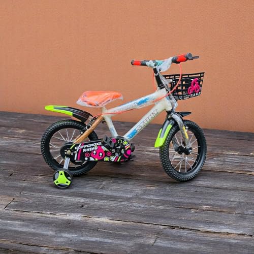 CLIFF CROXS Steel Frame 14T Road Cycle for Kids with Adjustable Seat & Bicycle Backrest,Training Wheels (90% Assembled) for Boys & Girls Ideal for Age Group 4-6 Years (Grey 14inch)