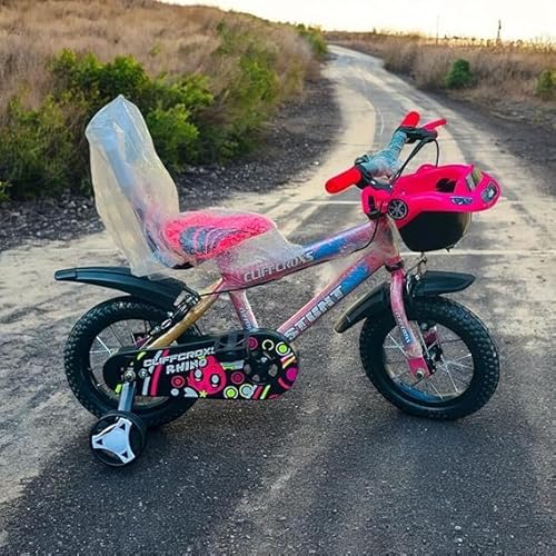 CLIFF CROXS Steel Frame 14T Road Cycle for Kids with Adjustable Seat & Bicycle Backrest,Training Wheels (90% Assembled) for Boys & Girls Ideal for Age Group 4-6 Years (Pink Blue 14inch)