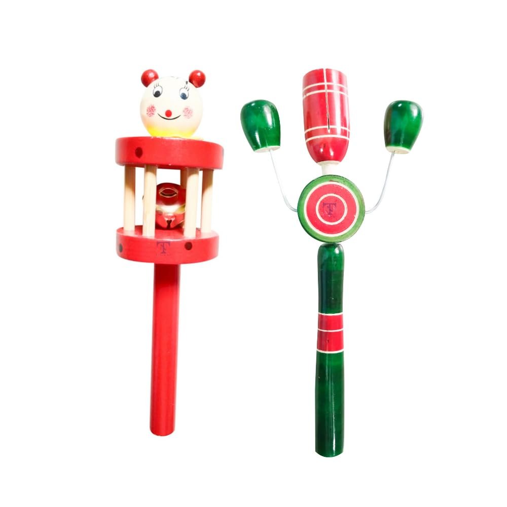 Colourful Wooden Baby Rattle Toy – Hand Crafted Rattle Set for Kids – Musical Toy for Newly Born (Pack of 2) TIK Small, Cage Rattle