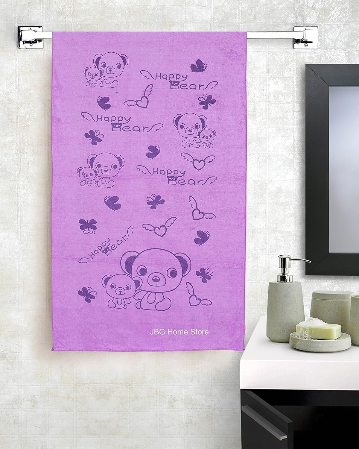 Combo Of Kids Bath Towel For Girls Boys -Premium Microfiber Quick Drying Towels for Unisex Kids – Cartoon Print Wash Dry Cloth Towel For Babies Toddlers, 60 x 120 CM, Purple & Blue Bear
