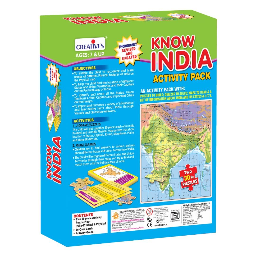 ✔️【EDUATIONAL GAME】:- Creative’s Know India Activity Pack to enable the child to recognize and learn names of different physical features and political boundaries of India on both the physical and political maps.