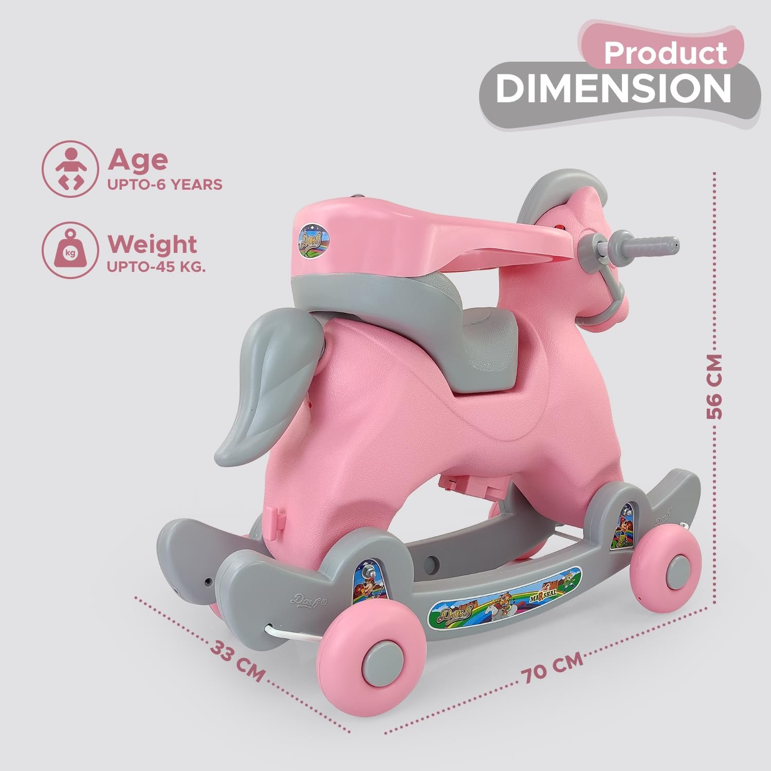 Dash Marshal 2 in 1 Ride on Horse for Kids, Horse Rider for Kids 1+ Years, Rocker Come Ride on Toy with Attractive Music for Kids (Capacity 20kg | Pink)