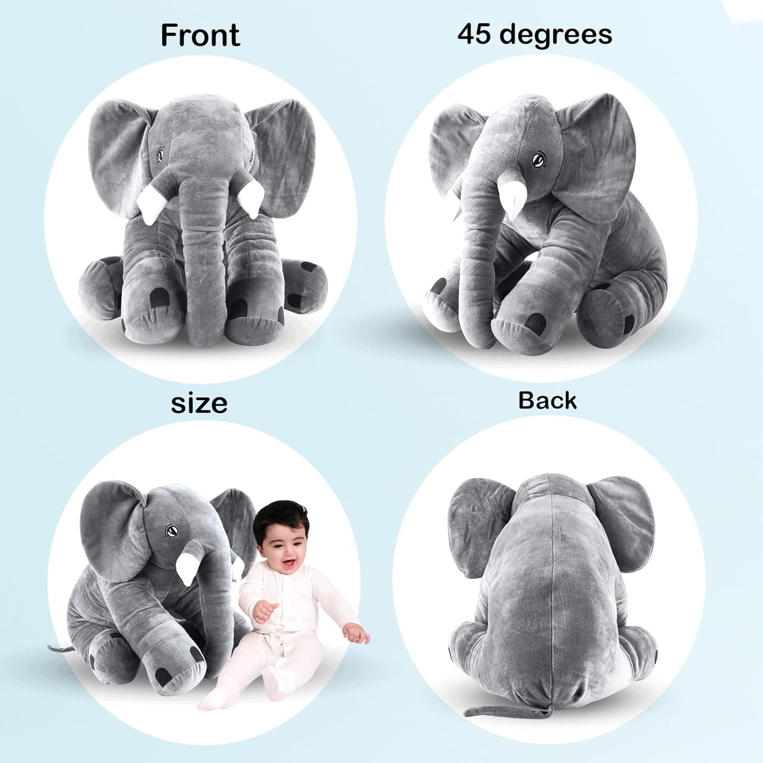 TYPE: Elephant Plush Toy with comfort for kids. MATERIAL: Certified Non Toxic Nylex soft fabric. Contents: Big Elephant Soft Toy. WASHING: This Is Hand and Machine Washable. And Do Not Forget To Dry It Fully Under The Sun Frequently Which Helps Keep The Plush Toy Soft.