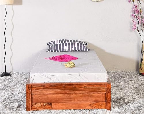 DECNITY Lobo Low Floor Single Sheesham Wood Bed With Storage For Bedroom | Sheesham Wood Bed | Solid Wood Bed | Bed with Storage| Single Size Bed | Bed for Living Room | Bedroom Furniture | Single Bed