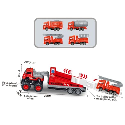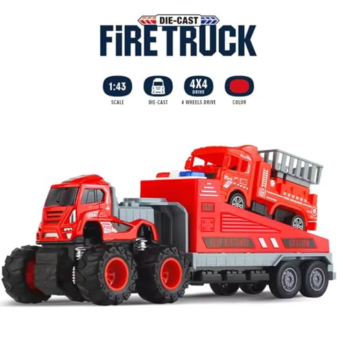 DEOXY 1:43 4WD Diecast Alloy Fire Rescue Big Truck Toys with Friction Powered Miniature Car Vehicle Toy for Kids (Sent Any One Design Truck – NO Light & Sound)