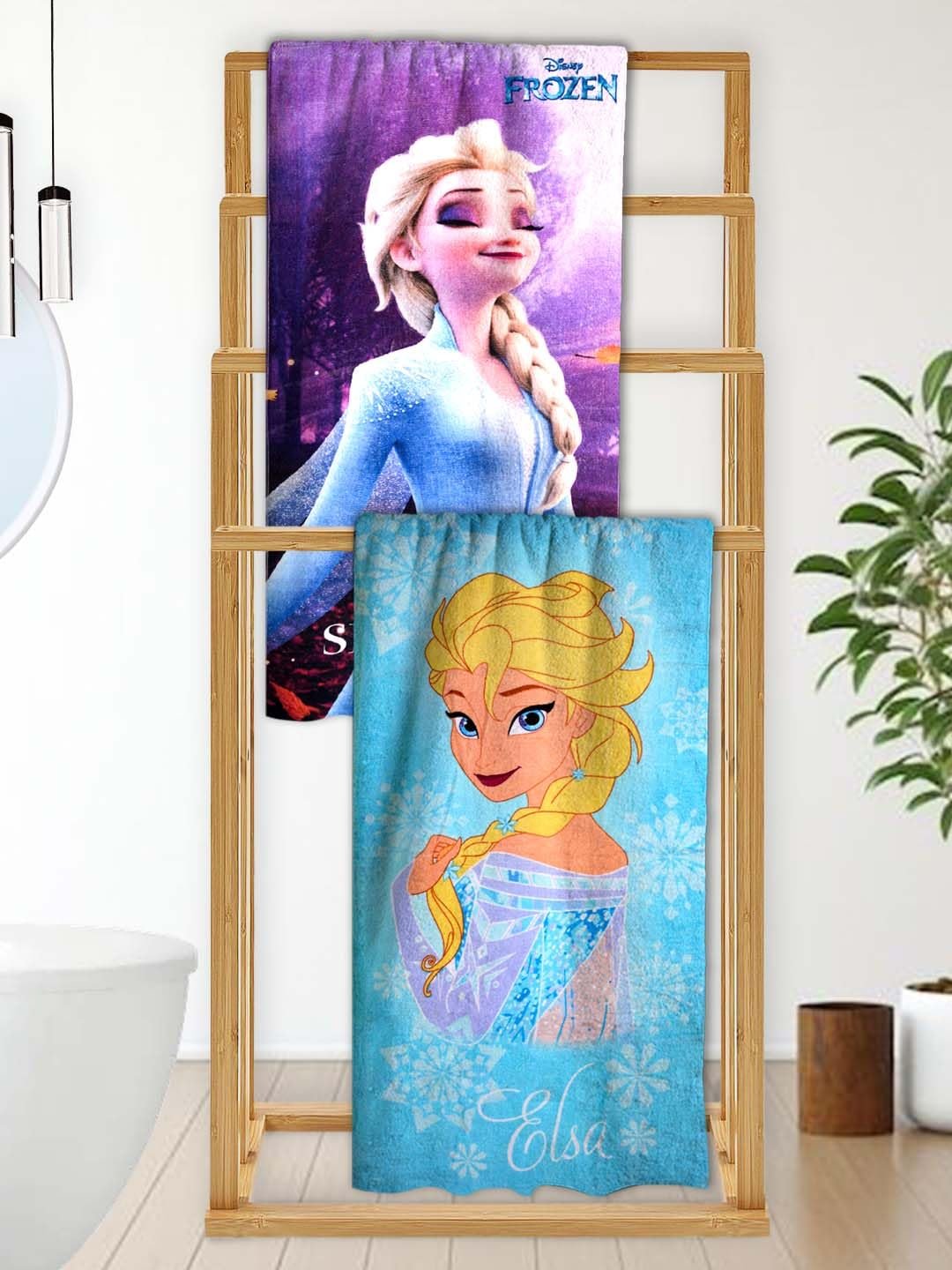 Disney Frozen Elsa Themed Kids Bath Towel, 60x120cm, 350 GSM, Soft & Absorbent, Multicolor, Perfect for Boys and Girls, Fun & Vibrant Design, Pack of 2