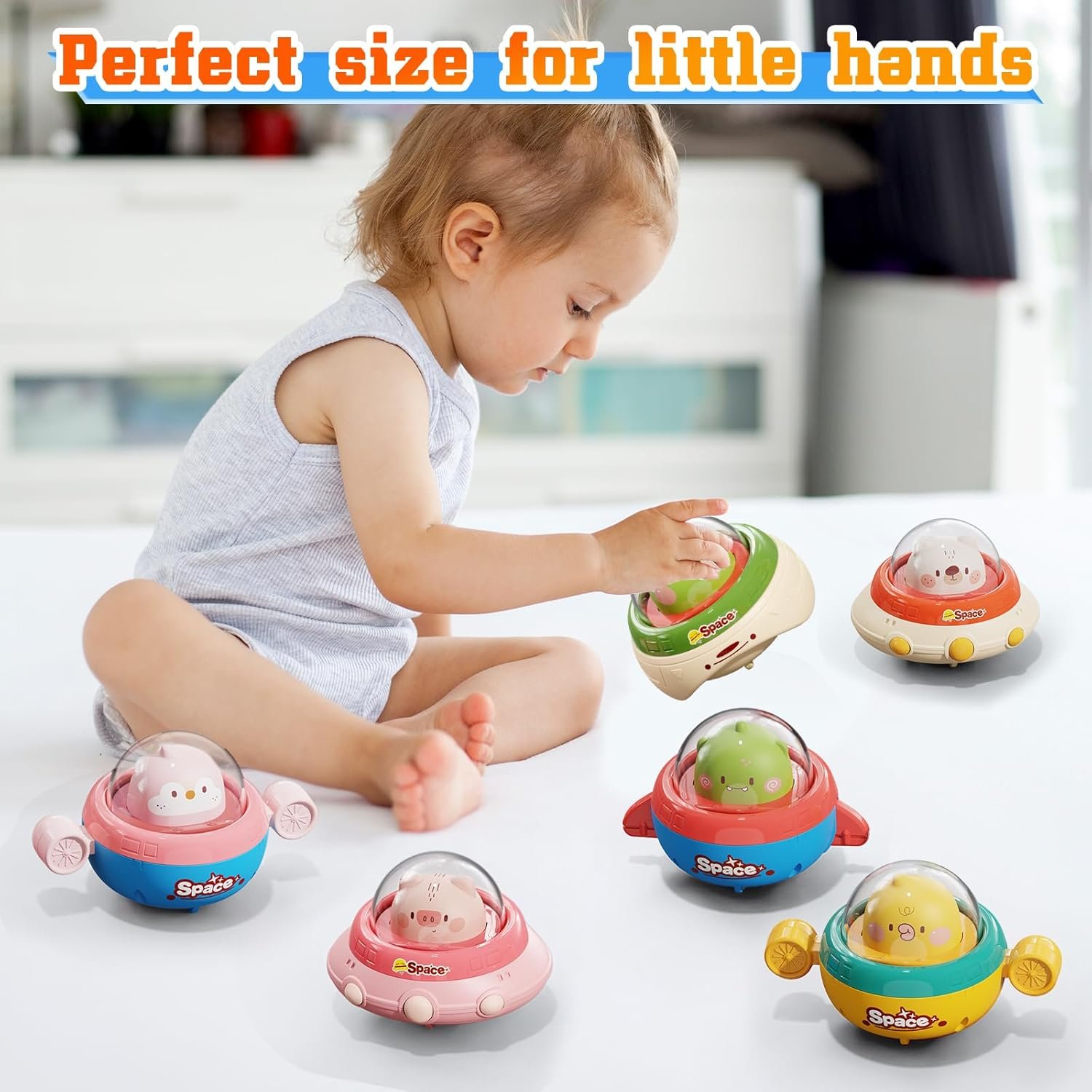 Space Theme Animal Cars:Unique UFO bodywork carries cute animals design(Bunny,Chicken,Frog,etc.) baby car toys for ages 0-2,make baby attracted at first sight.