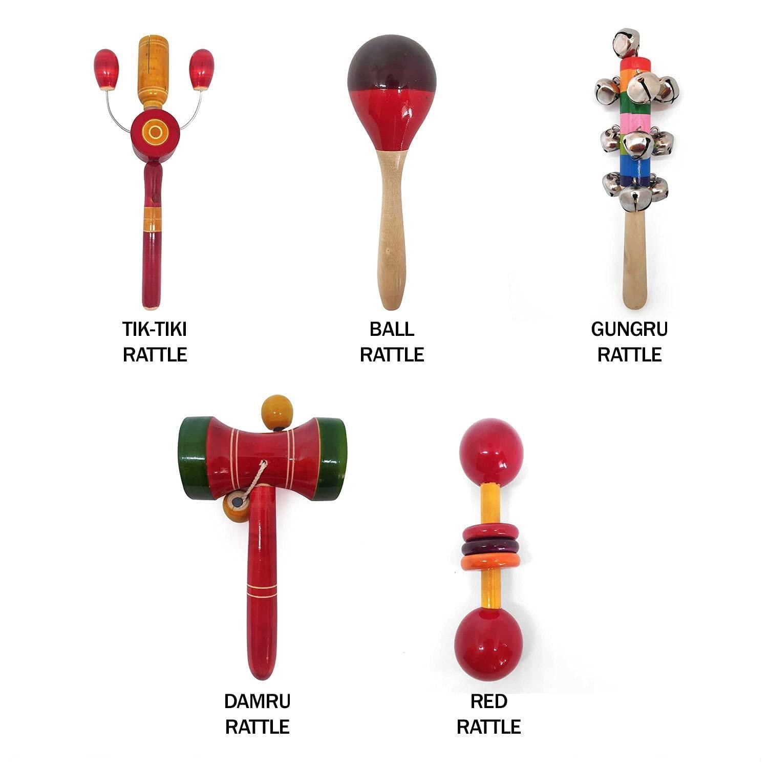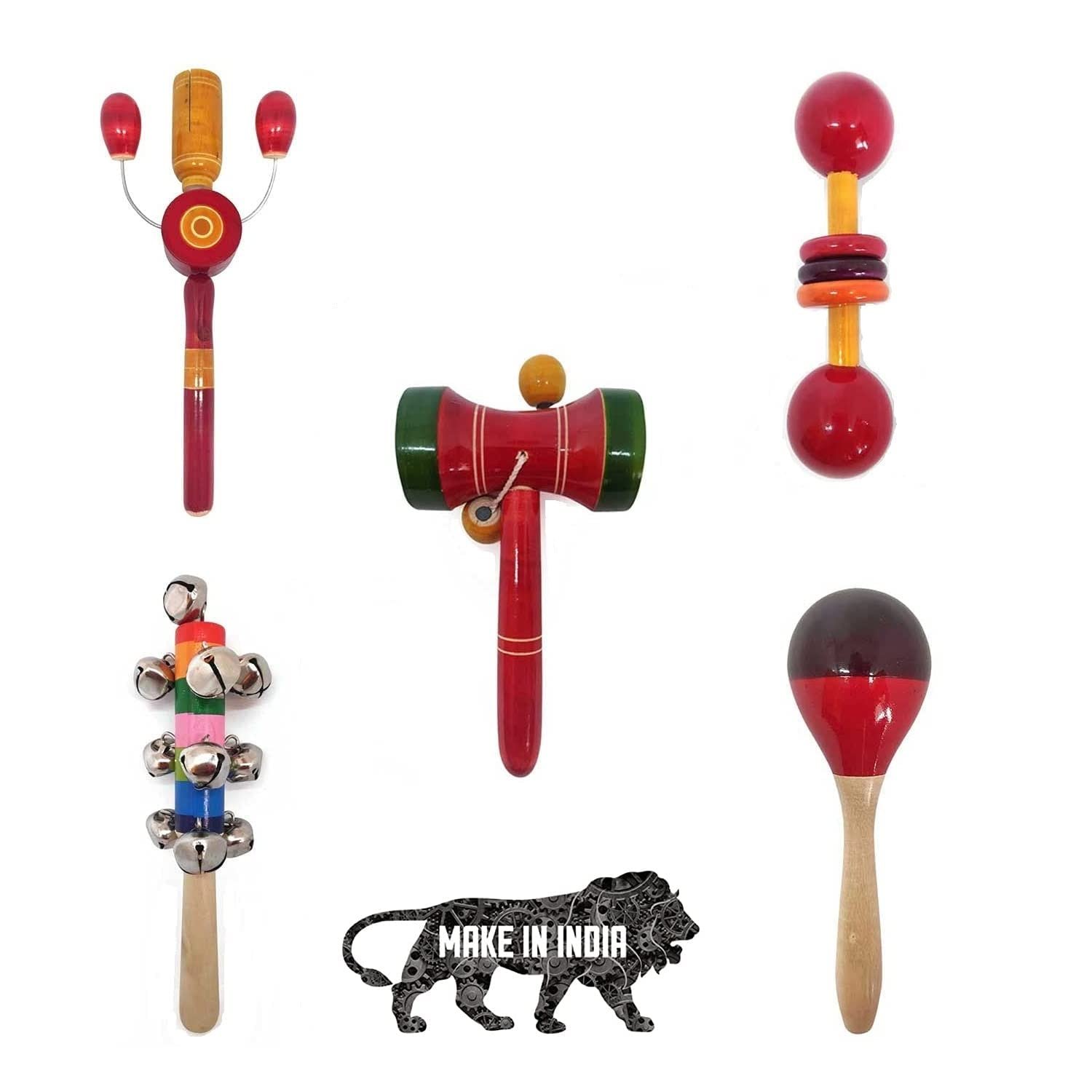 ECO-Friendly Toys Wooden Rattles Toys for Baby/New-Born Infant Kids – Set of 5 pcs – Multicolor – Discover Sounds, Develops Sensory Skills