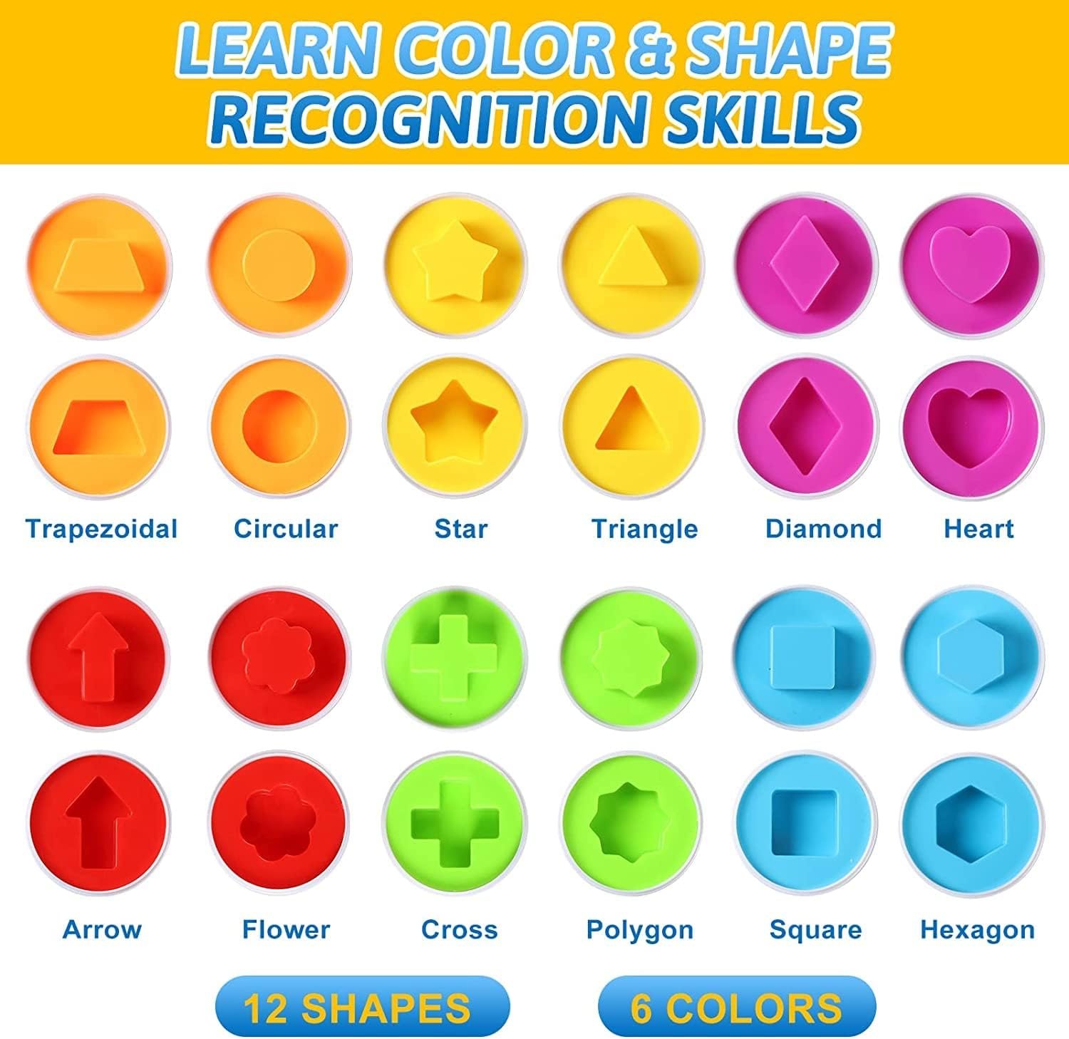 EGGS TOY: These eggs are made with top quality child-safe materials hence making it child friendly, each matching egg set contains 12 different basic shapes and 6 different colours. The shape of these smooth egg toys is perfect for fingers to grasp, easy to open, and easy to stick together