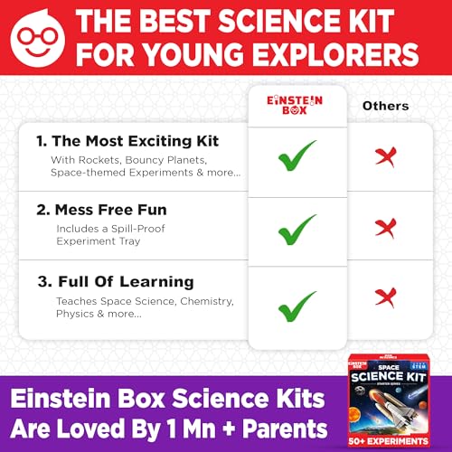- SCIENCE KIT FOR BOYS & GIRLS AGES 6-15 YEARS: Einstein Box Space Science Kit is the perfect resource for parents seeking to provide their children with the best-in-class learning experience. Our innovative kit offers 50+ mind-boggling experiments to help your kids foster an early love for science.