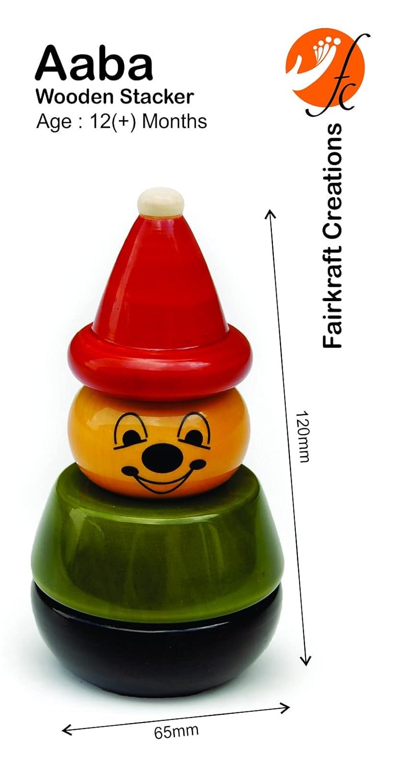 FAIRCRAFTCREATIONS Handcrafted Wooden Stacker Toy : AABA | for Kids 1-2 Years | Develops Gross Motor Skills & Spatial Awareness | Non Toxic Safe for Kids | Made in India (Green)