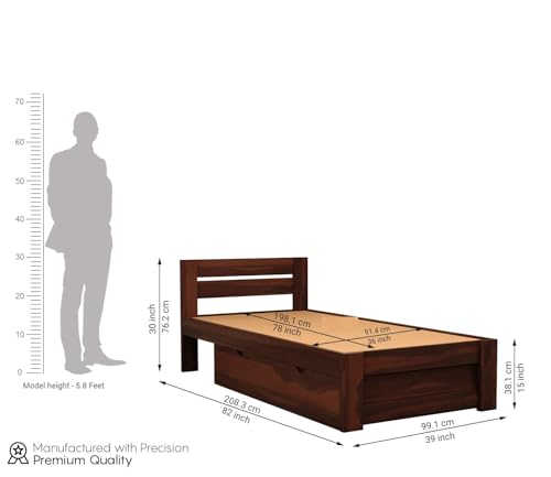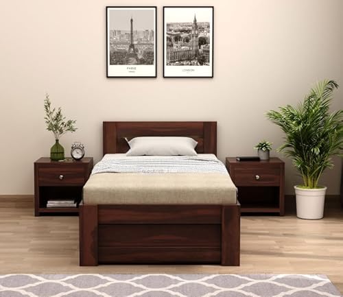 Ferrovilla Donzon Dark Single Sheesham Wood Bed with Drawer Storage | Sheesham Wood Bed | Solid Wood Bed | Bed for Home | Bed with Storage| Single Size Bed | Bedroom Furniture |Single Cot | Wooden Cot