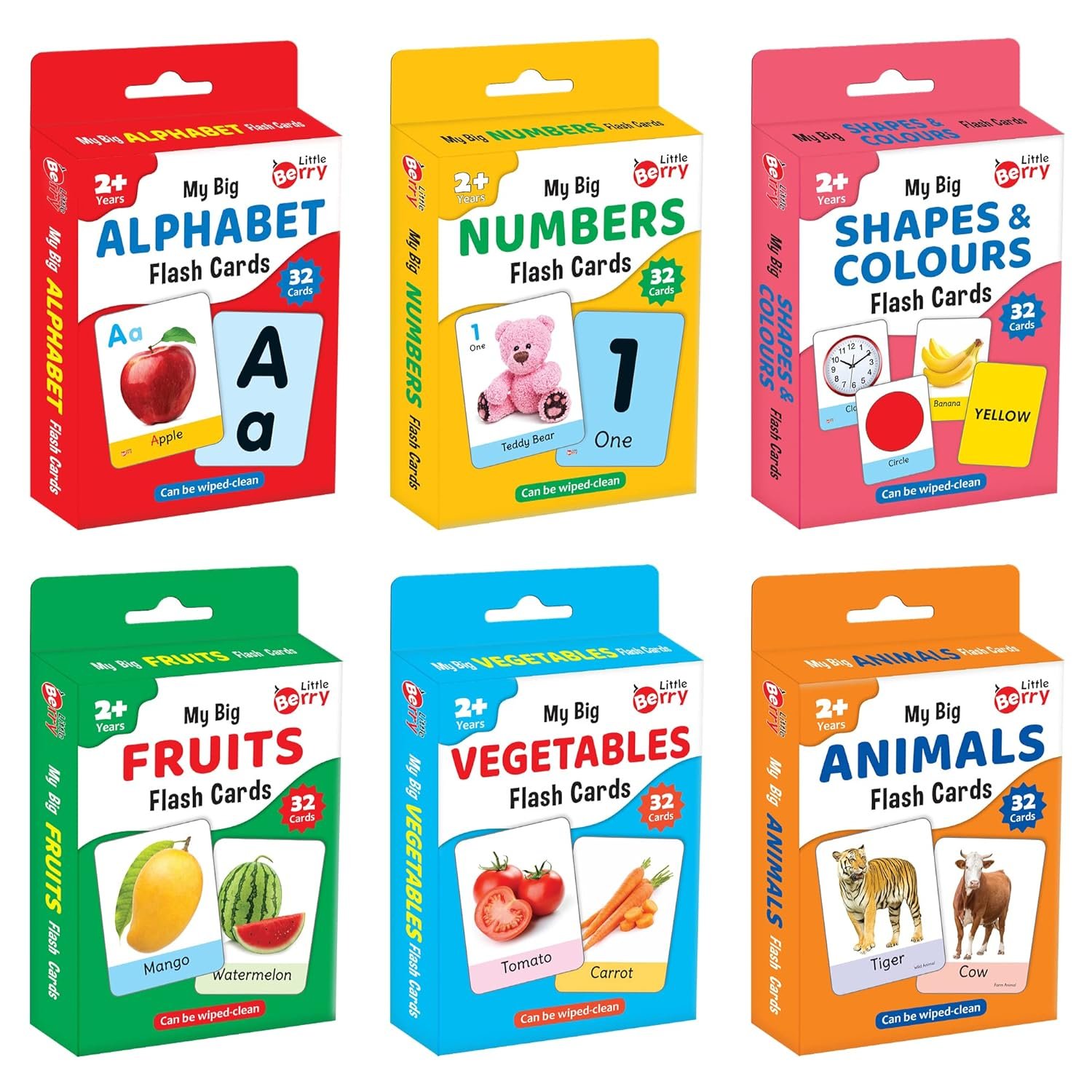 PROVEN LEARNING TOOL FOR TODDLERS 2 TO 6 YEARS: Little Berry’s flash cards set of 6 teaches important early learning topics: alphabets, numbers, shapes, colours, fruits, vegetables, and animals. It’s a complete learning set to improve memory, concentration, build vocabulary and develop early reading skills.