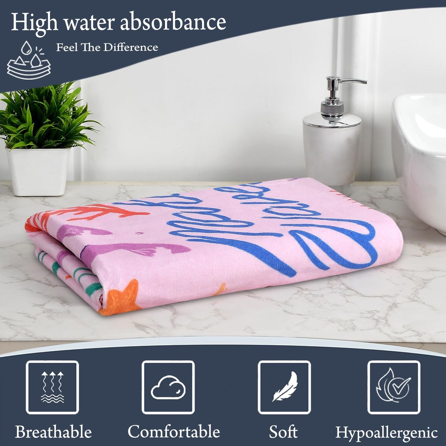 Crafted from anti-fade cloth, this bath towel preserves its vibrant colors and prints wash after wash. The fade-resistant fabric safeguards the towel\’s enduring visual allure, preventing colors from losing their vibrancy or fading. With hues that remain vivid and bright, this towel maintains its captivating appearance, even with repeated use. Parents can rely on their child\’s towel to retain its pristine condition, ensuring continued attractiveness and charm.