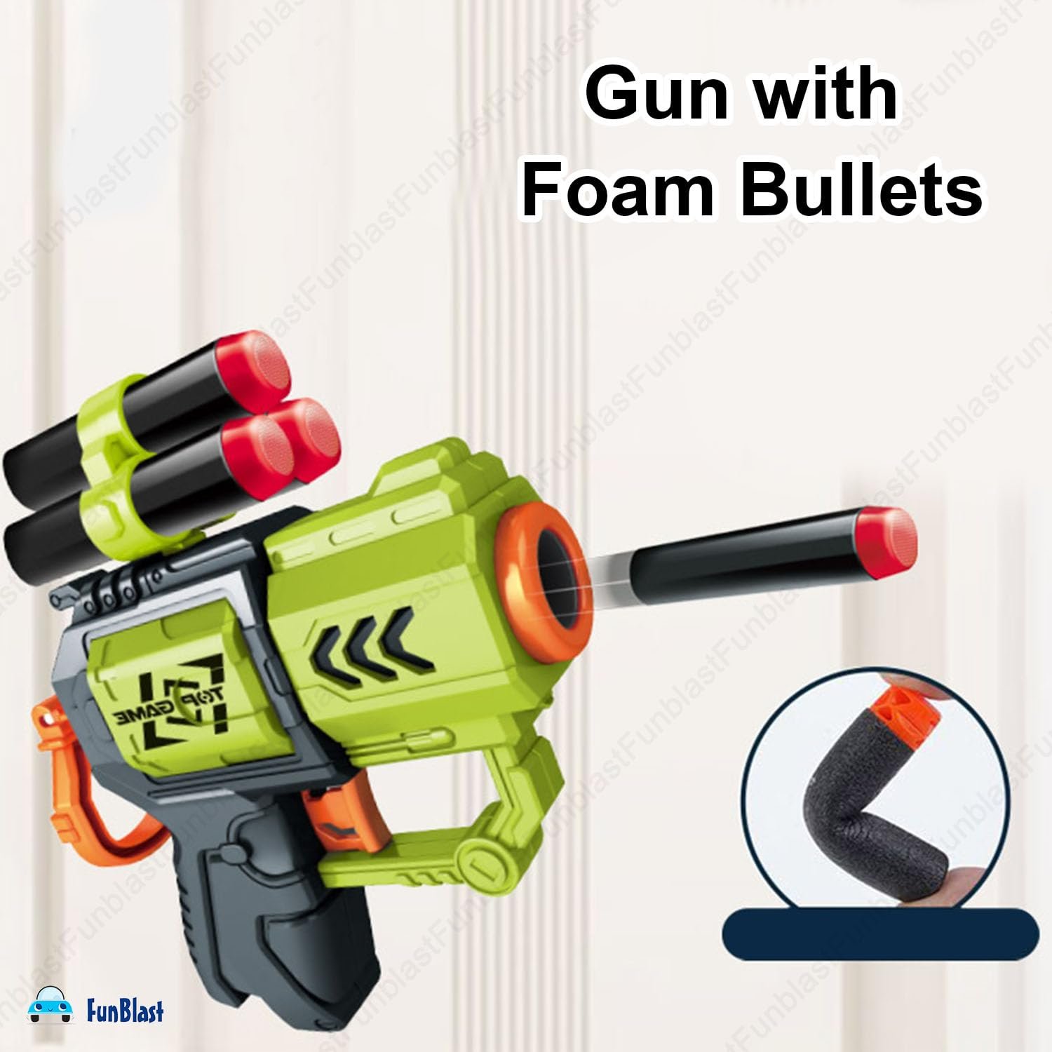 FunBlast high speed manual soft bullet gun set comes with 1 blaster gun, 4 soft foam bullets