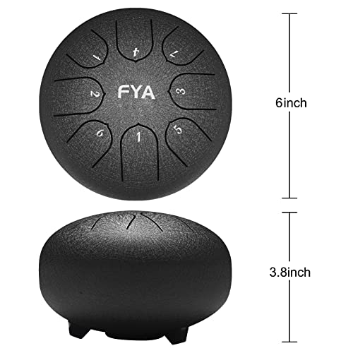 FYA 6 Inch Steel Tongue Drum 8 Notes C Major for Kids and Adults with Rubber Mallets, Finger Picks and Padded Travel Bag, Unique Gifts for Him or Her (Black)…