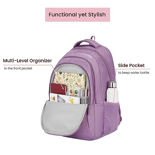 Genie Kira Laptop Backpack in pastel Lavender colour.3 zips, Water Resistant, Lightweight Bags for Office, Travelling. 36 litres. 19"