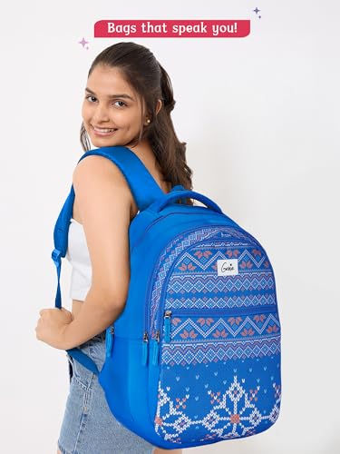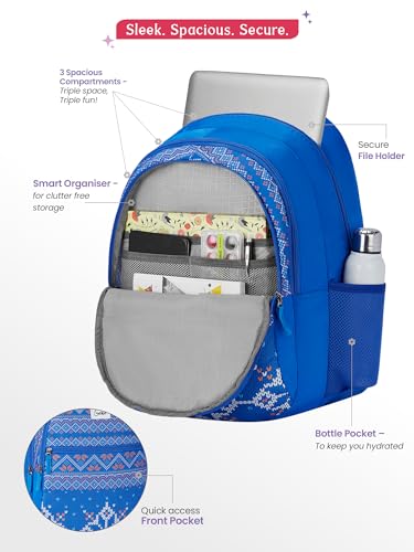 Genie Tess School Bag for Girls. Blue, 3 zips, Stylish & Trendy College Bags for Girls, Water Resistant, Lightweight Bags for Office, Travelling. 36 litres. 19"