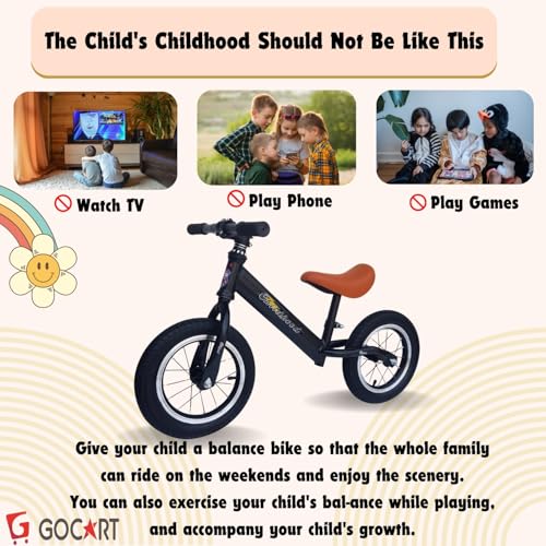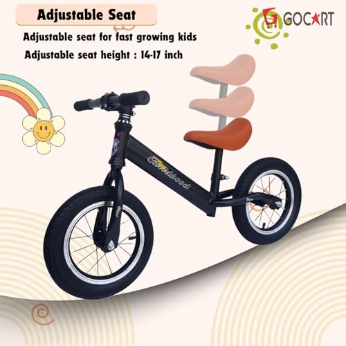 GOCART WITH G LOGO 12inch Tier Lightweight Without Pedal Adjustable Seat Kids Cycle for Girls and Boys, Rigid, Black