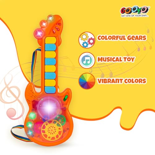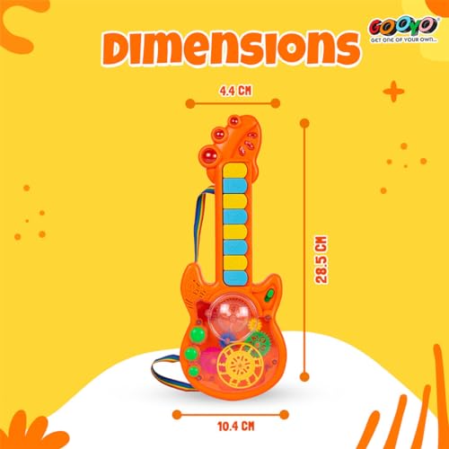 Gooyo GY999-53 Battery Operated Musical Toy Guitar with 8 Keys & 3D Gear & Flash Light Effects for Kids/Baby/Girls/Boys/Gifts/Toddlers | Orange Color, Power Source: 3xAA Battery (Not Included)