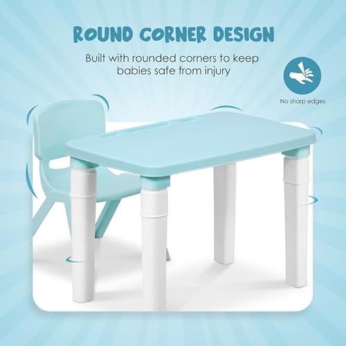 - Includes 1 lightweight Rectangle plastic table, 4 legs and 1 lightweight chair.Sturdy, lightweight moulded plastic construction for easy configuration and rearrangement.Perfect gift for boys and girls.