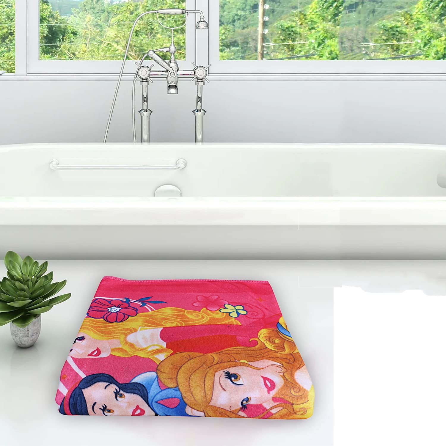 Heart Home Kids Bath Towel|Soft Cotton & Sides Stitched Baby Towel|Microfibered Super Absorbent Princess Pattern Towel for Infants,Toddler,55×26 Inch (Pink)