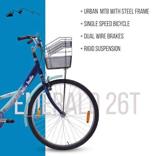 Hero Emerald 26T Bicycle For Girls/Womens With Front Basket And Inbuilt Carrier | Road Bike | Rigid Fork | 18 Inch Frame | Single Speed (Turquoise Blue)