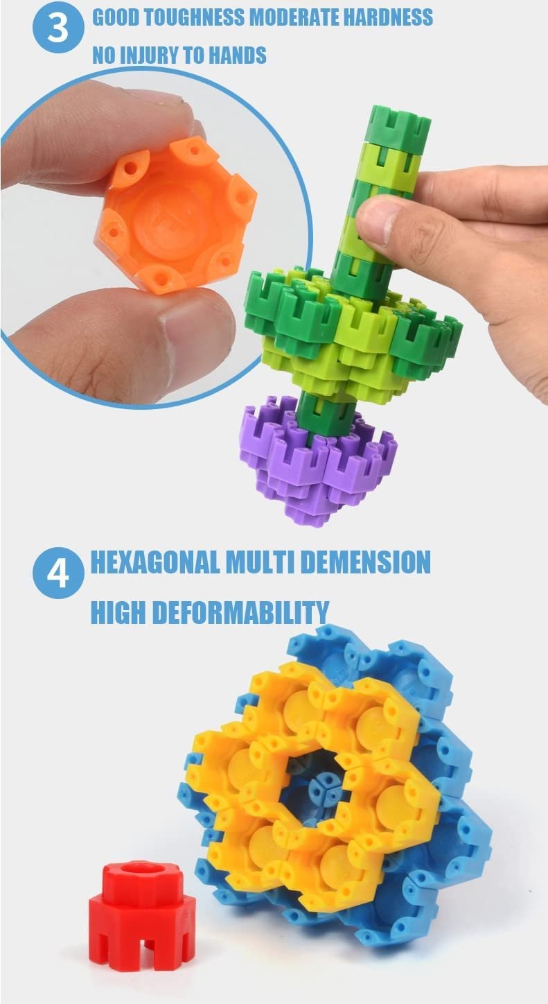 Hexagon Shape Building Blocks Game Toy Set for 3-8 Years Old Kids Boys & Girls,Multicolor Color,(200 Piece in Pack of 1)