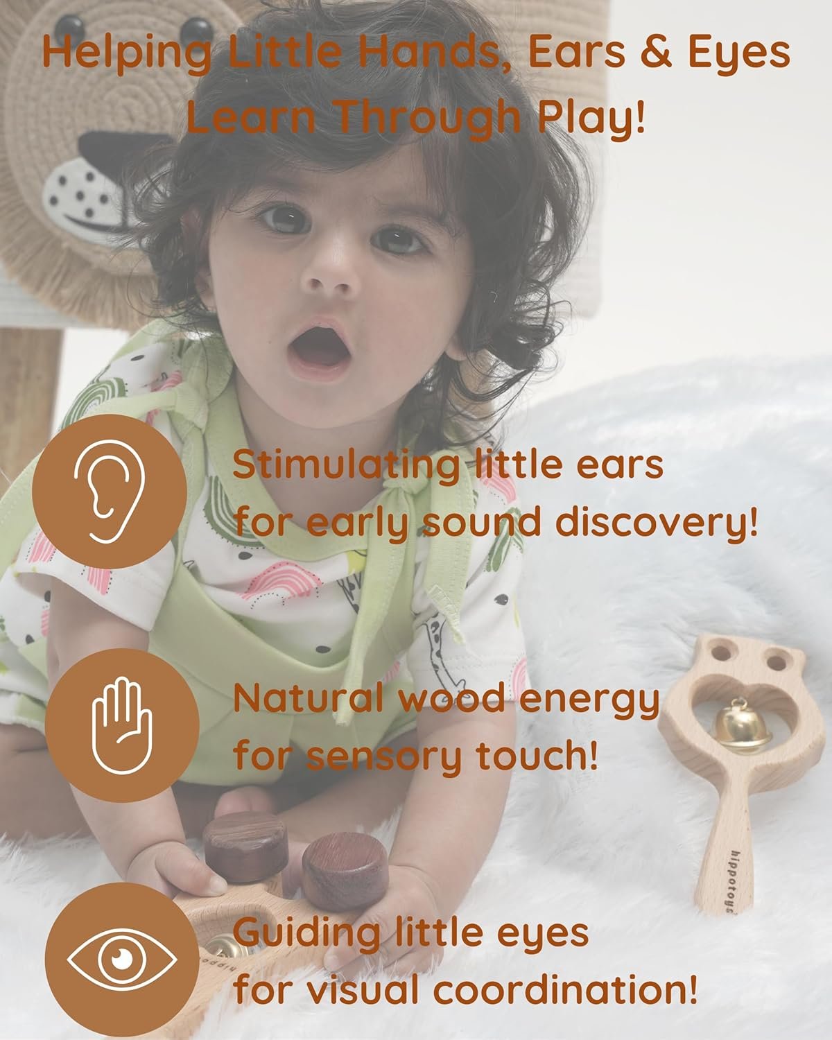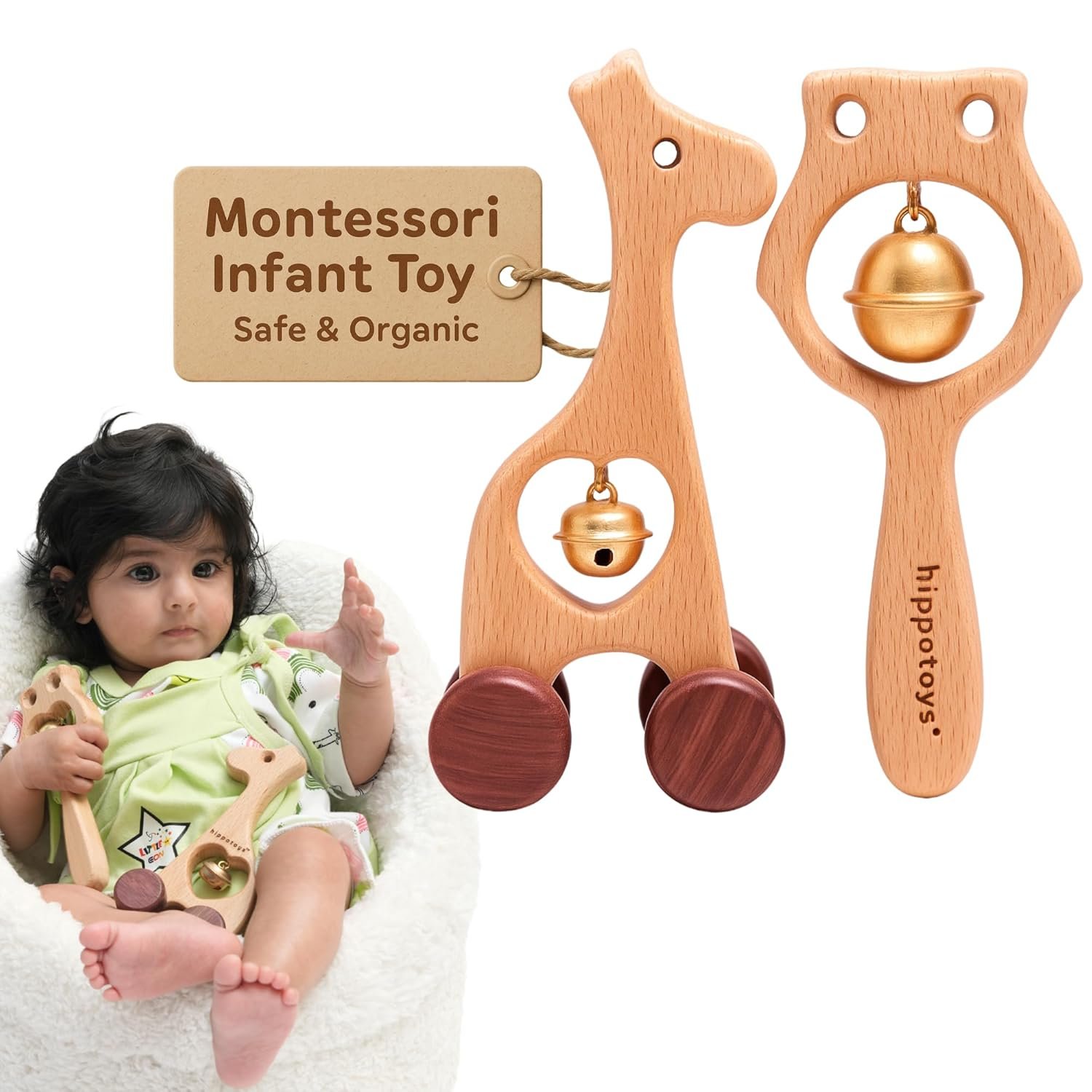 Perfect for Little Hands HippoToys Wooden Rattle Set is designed for 👶 baby toys for 0 to 6 months. These 🍼 newborn toys 0-3 months are lightweight, non-toxic, and safe, making them ideal for a 👧 2-month-old baby or 👦 3-month-old baby. A 🎶 jhunjhuna for baby 0 to 2 years, it helps develop 🤲 motor skills & 🎨 sensory exploration. A must-have 🎁 baby shower gift!