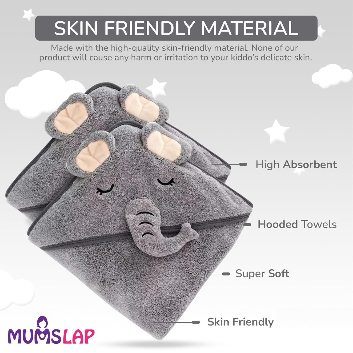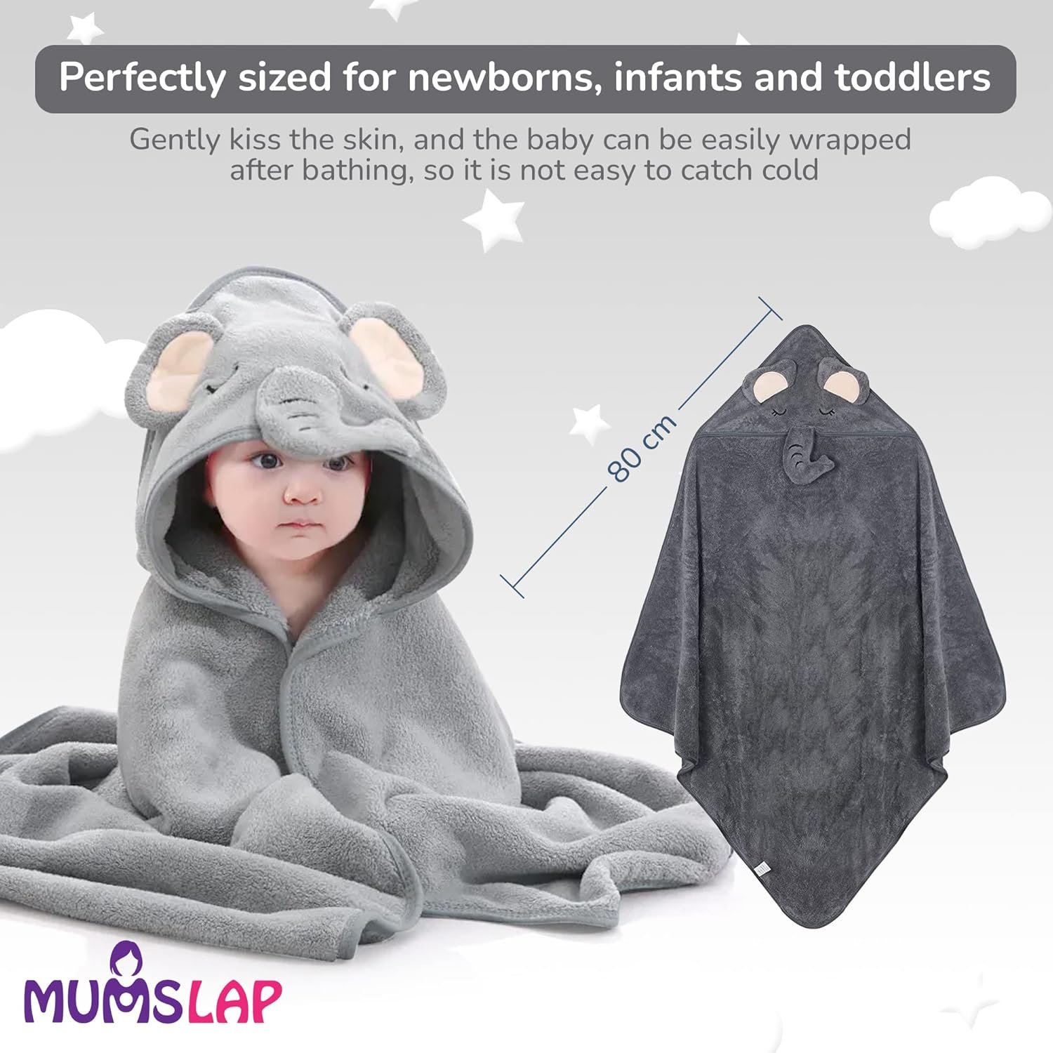 SOFT and ABSORBENT: Our thick, plush hooded baby towel is as flexible as fluffy white clouds. You can wrap and dry your baby in this gentle, warm, and comfortable bath towel after bath or swimming