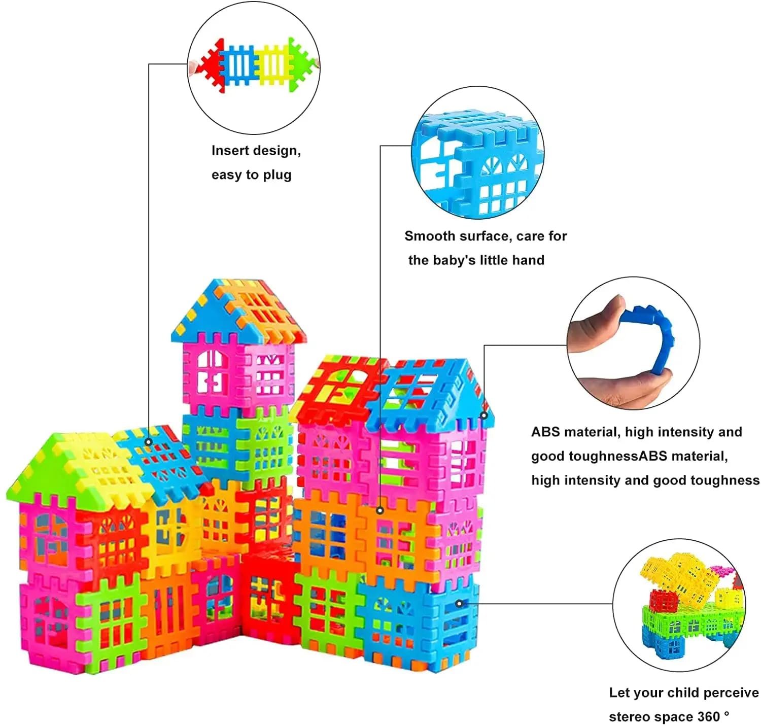 Included Components: Pack of 1 Plastic House Building Blocks For Kids