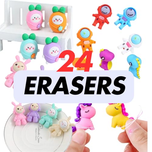 - Cute and Fun Erasers: Delight kids with adorable PACK OF 24 erasers — perfect for school stationery collections!