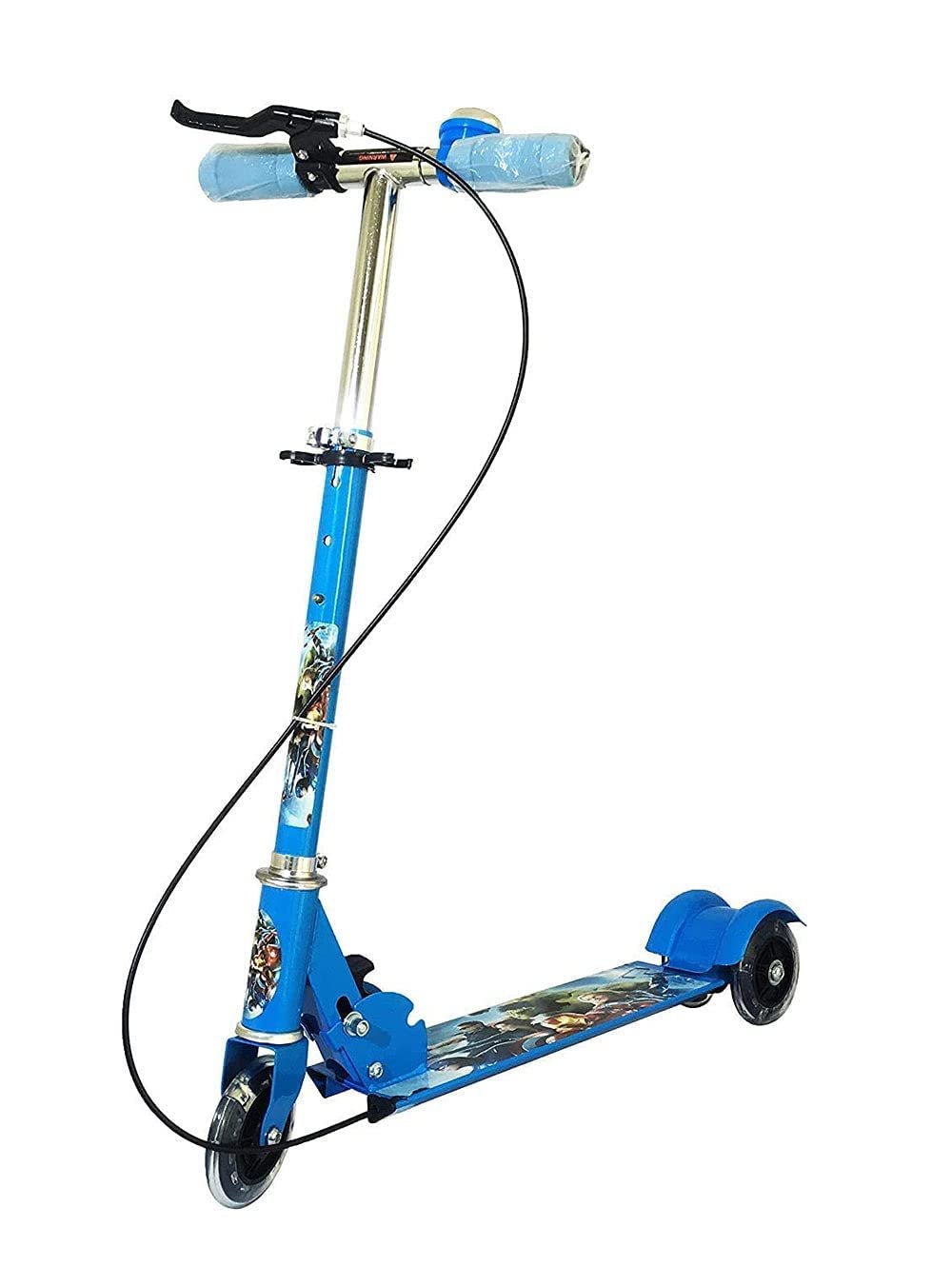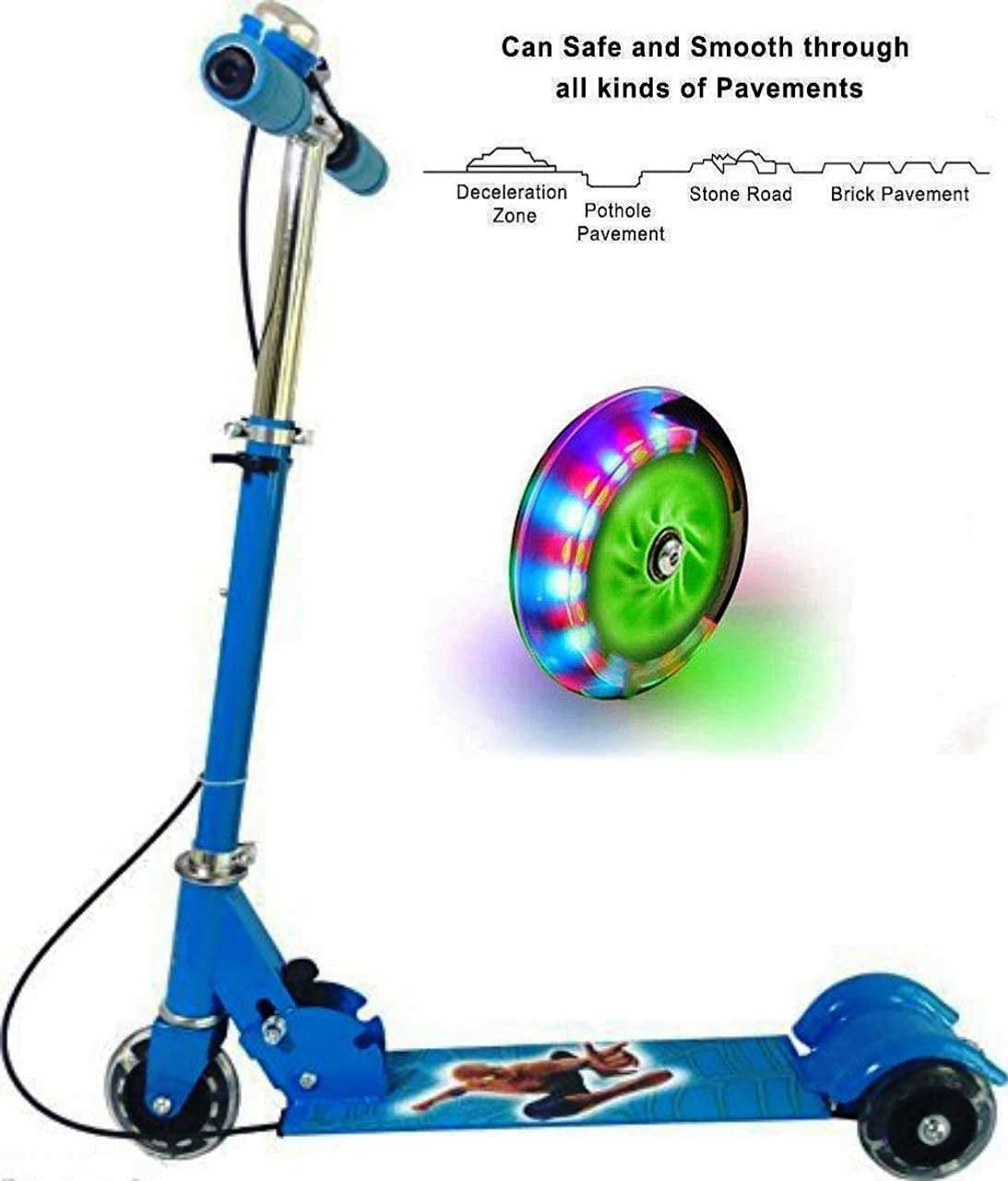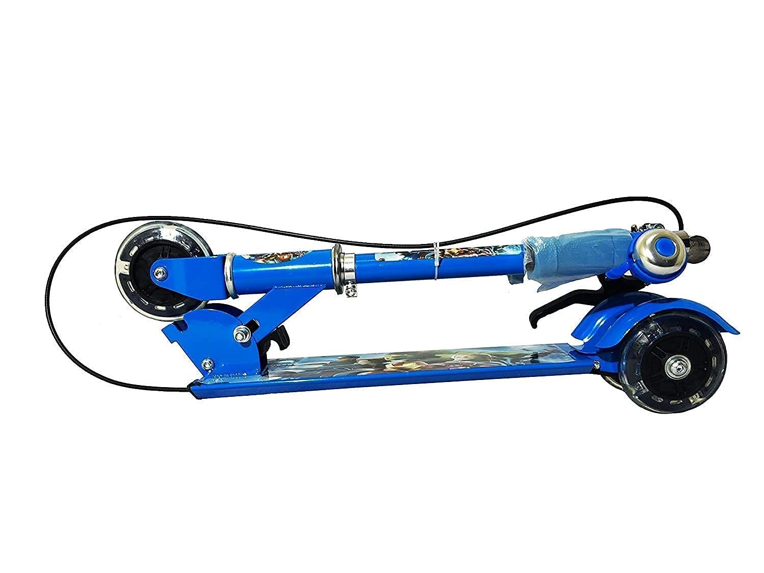 Ixora® Kick Scooter for Kids 3 Wheeler Foldable Kick Skating Cycle with Brake and Bell, LED on Wheels and Height Adjustable for Boys and Girls for 3-7 Years (Blue)