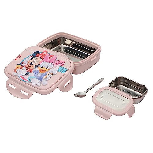JAYPEE Steel Tek Jr. Insulated Lunch Box Mickey Mouse & Donald Duck, Pink, 400 ml | Airtight Tiffin Box for School Kids Inner Stainless Steel Mini Box | Bpa Free
