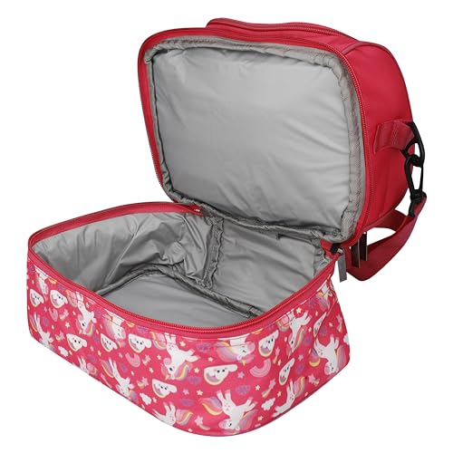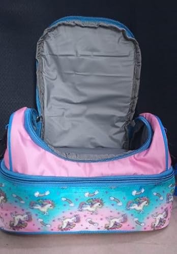 Ji and Ja® Multi Compartment Dual Slot Lunch Bag Double Insulated Tiffin Lunch Bag with Multi Zipper Pockets for School (Unicorn)