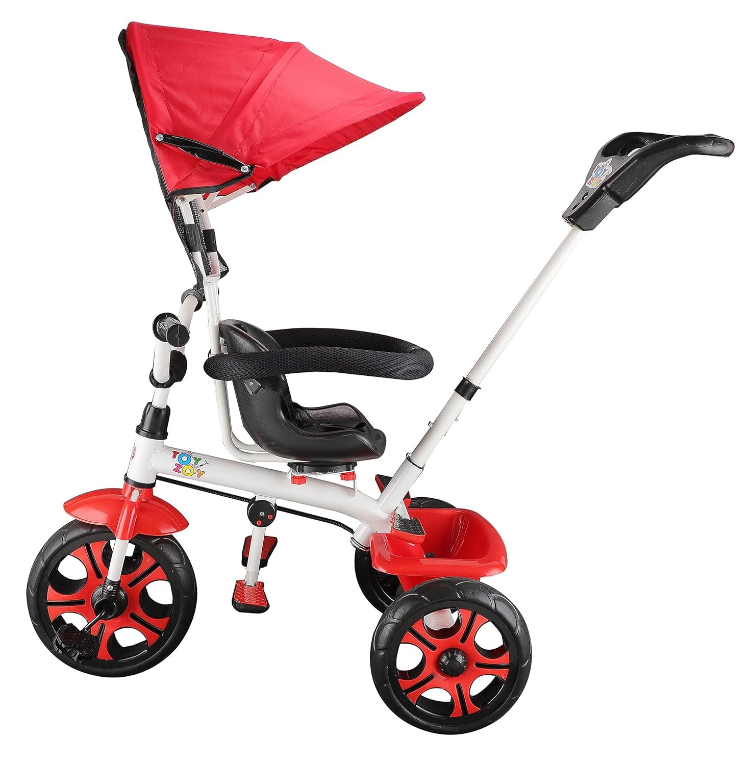 CONVENIENCE: Parent push handle is removable and height adjustable from 75-100cm. Ample storage place with back storage bin.