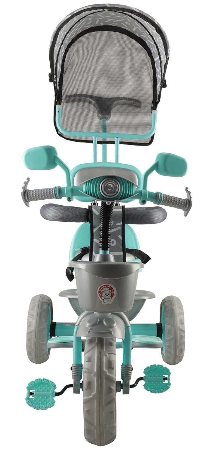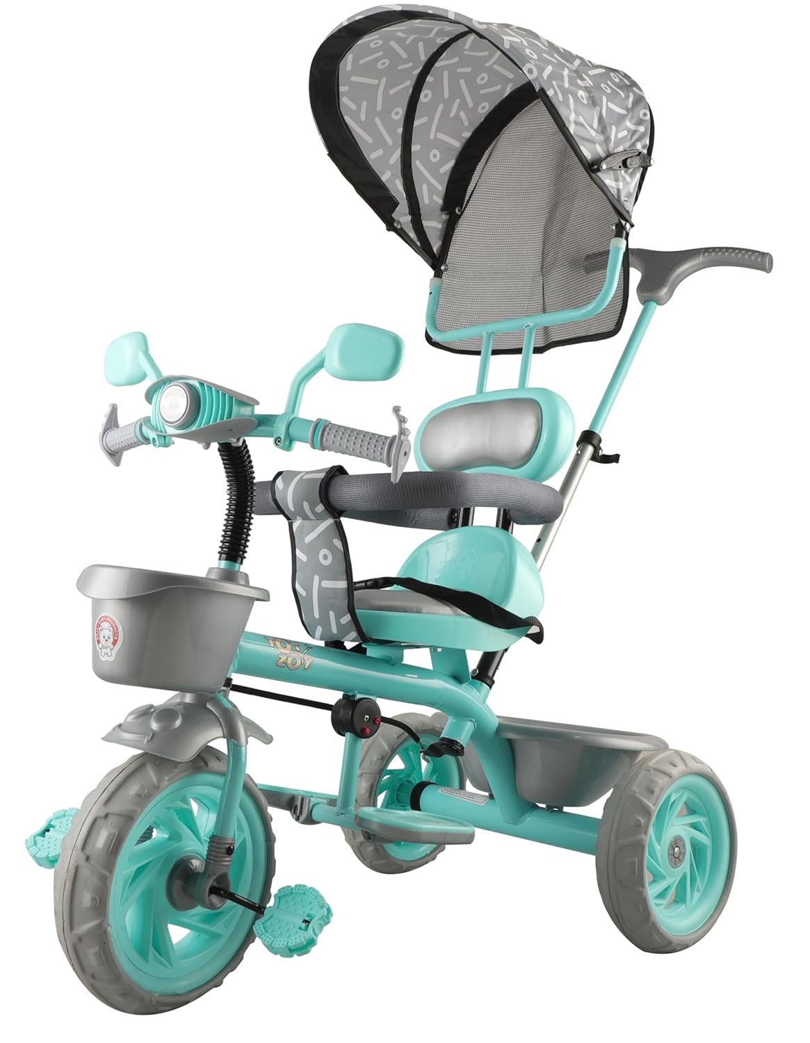 JoyRide Tiny Trekker Tricycles for Kids 1.5 to 5 Years with Reversible Seat,Parental Push Handle, Foldable Canopy Storage Baskets |Plug & Play Trikes for Girls Boys Mystic Green