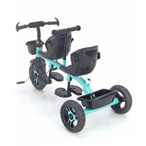 JoyRide Twin Trekkers Kids Tricycle with Parental Adjust Push Handle Children Seat Belt Dual Steering 2 footrest 2 Big seat Kids trikes Ride on Cycle Outdoor Toddler Bicycle for Boys & Girls (Blue)