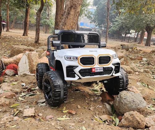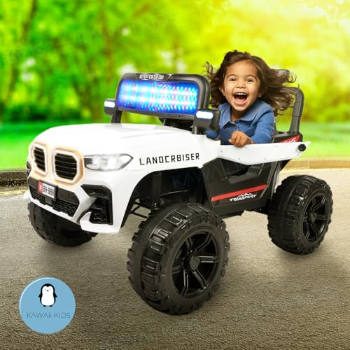 Kawaii Kids Battery Operated Electric Car for Kids Rideon Jeep with Remote Control, USB, Bluetooth and Windshield Lighting, for Kids 1 to 5 Years (Jeep, White)