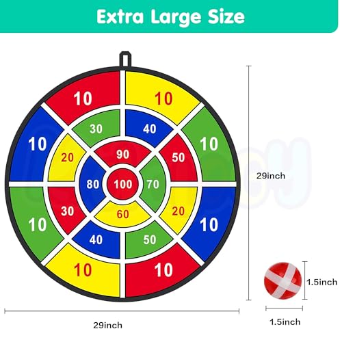 - Safe & Fun Dart Game for Kids – Features a 29 inches soft fabric dart board and 12 sticky balls, offering safe, no-sharp-point fun for young players.