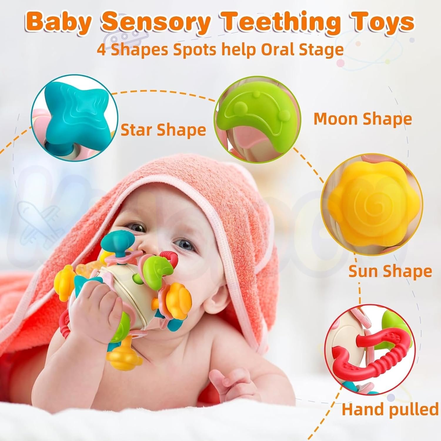 [SAFE & DURABLE] – Made from food grade silicone and sturdy plastic, BPA-free. Perfect size for small hands. All in one piece without small parts. Sterilize the infant toys by boiling them in water before initial use.