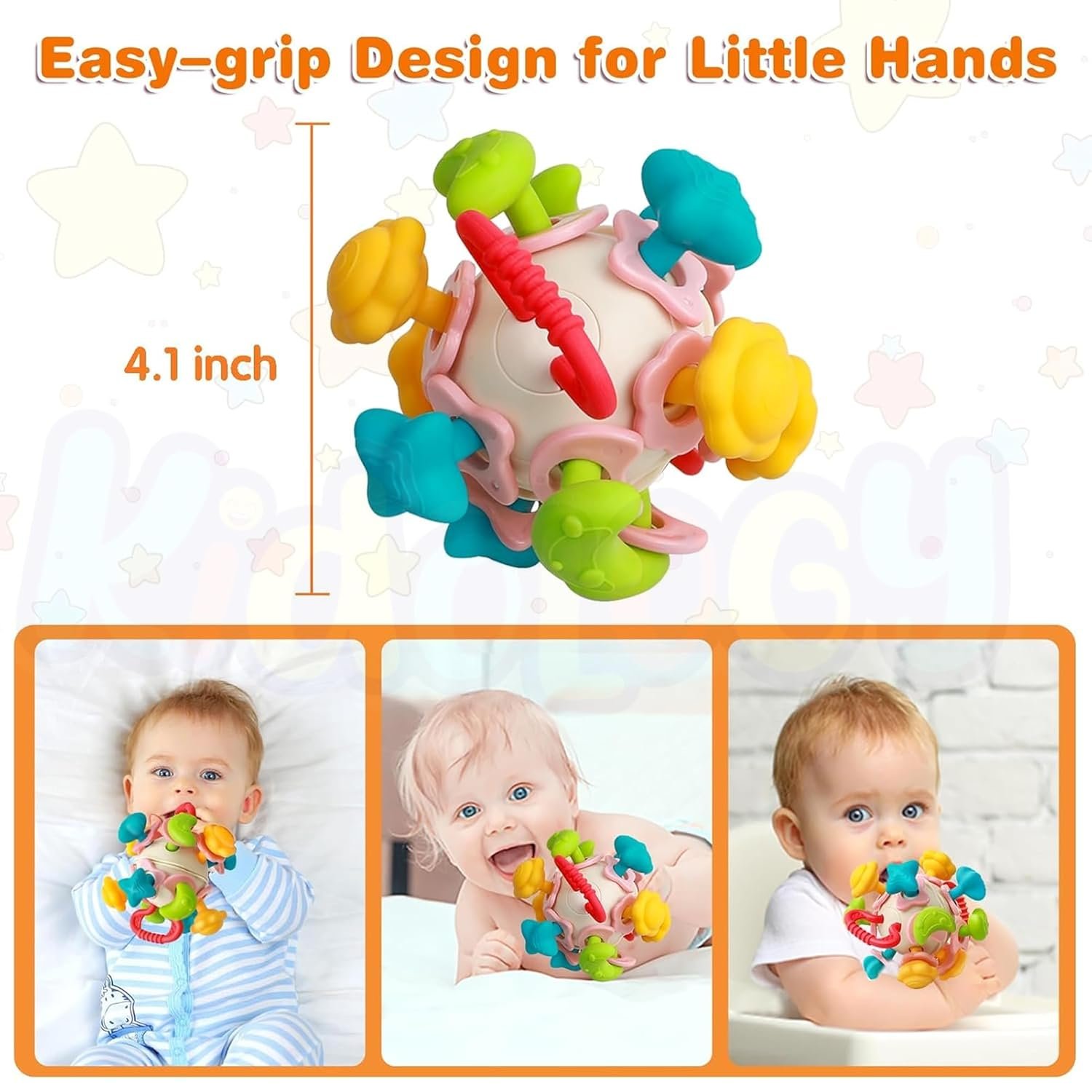 Kidology Silicone Space Ball Baby Teether – Sensory Toys for Boys and Girls, Newborn & Infant Rattle Toys, Montessori Learning Developmental Toddler Toys Suitable for Babies 6+ Months, Multicolor