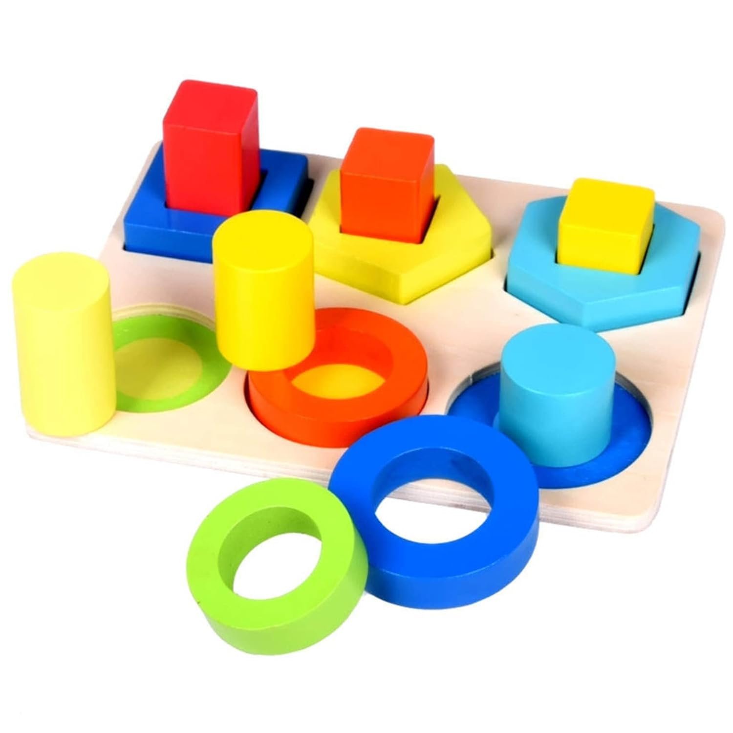 👦Skills Deveploment: Our wooden stacking toys, with geometric shapes which can be stacked together on one wooden board it can not only improve hand-eye co-ordination but also help your little child recognise shapes and colours.