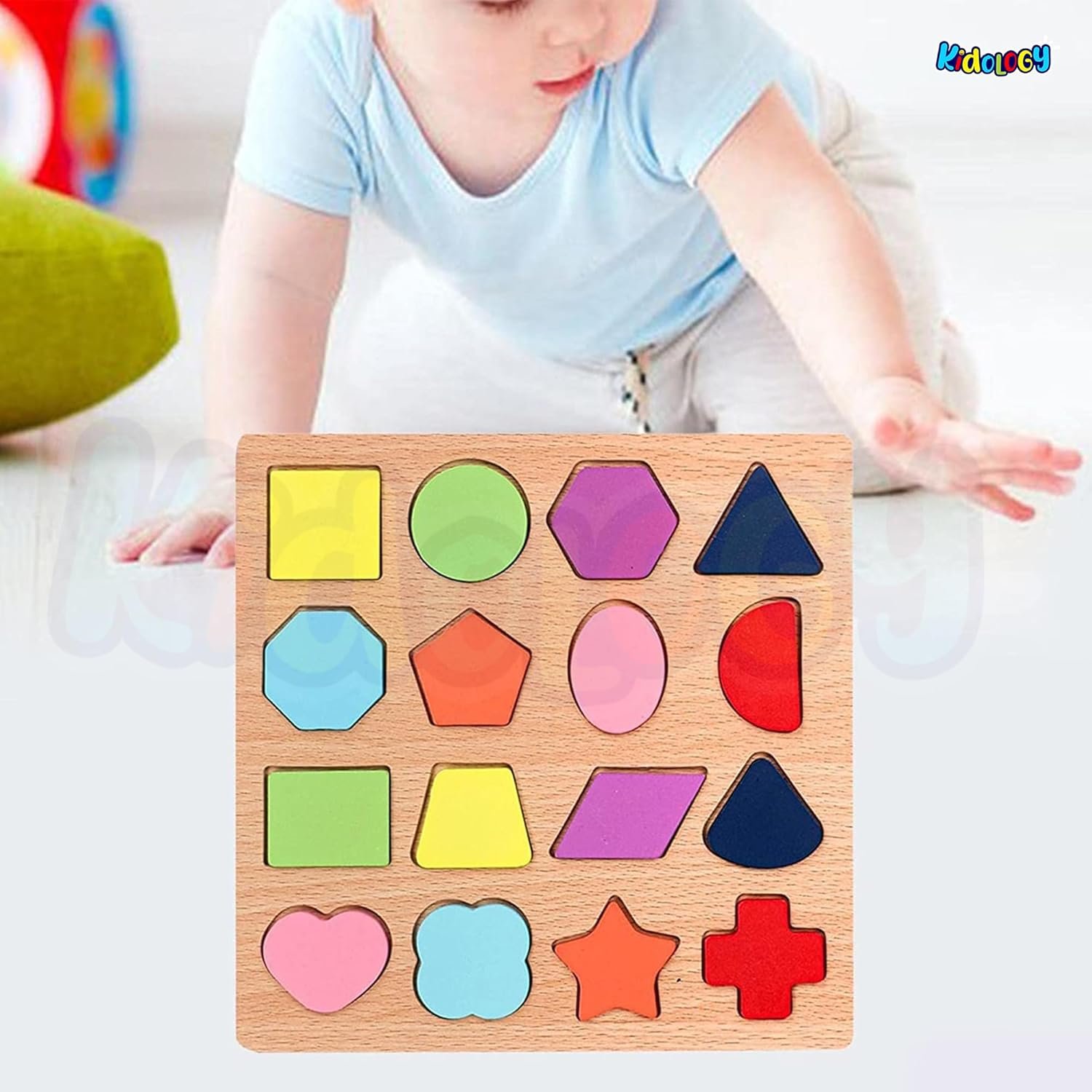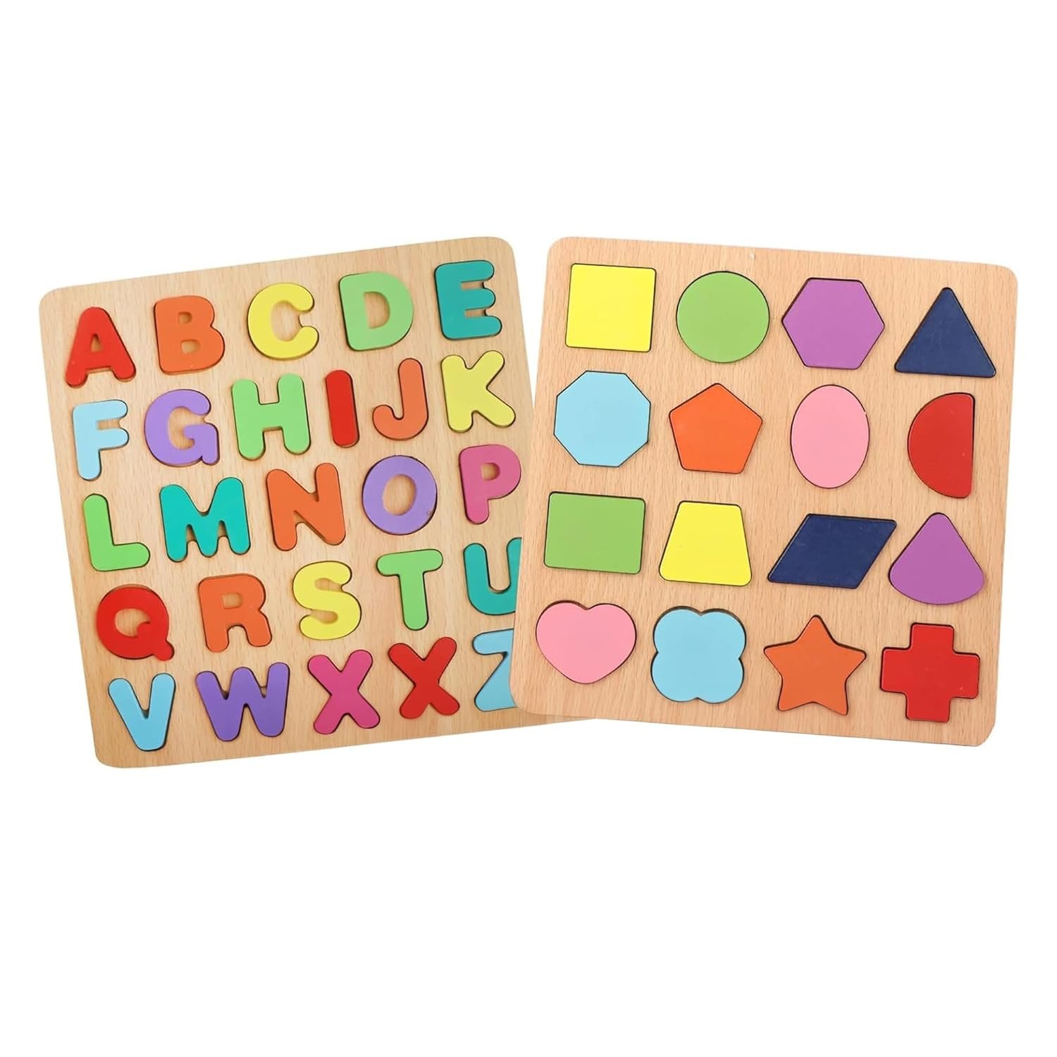 Kidology Wooden Puzzles for Toddlers for Kids Preschool Learning Toys, Wooden Montessori Toddler Puzzles Wooden Alphabet, Number, Shape Puzzles for Kids 2-4 Years Old (Alphabet + Shapes Puzzle – 2Pcs)