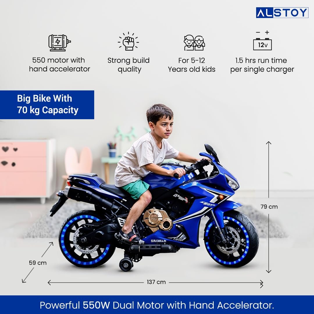 Kids Hyper-X Toy Bike with Rechargeable 12v Battery Operated Electric Ride-on Bike for Kids | BIS/ISI aproved Safe | 6 Months All Electric Warranty | 5 to 12 Years | Large | Blue